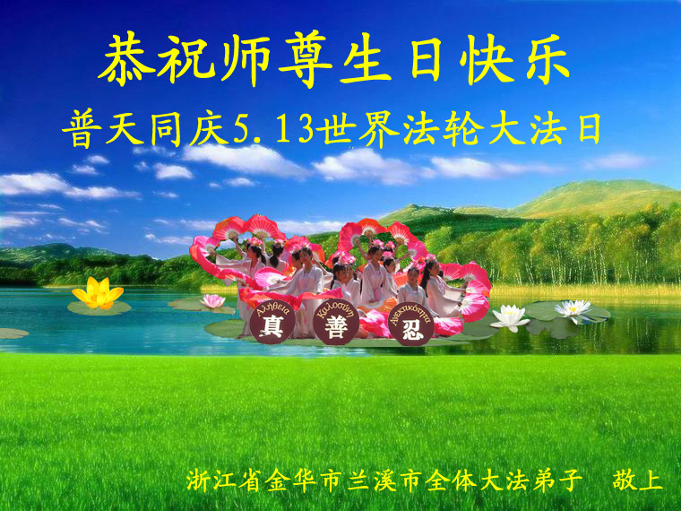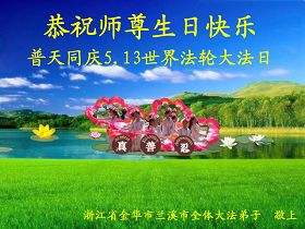 浙江省金華市蘭溪市全體大法弟子恭祝師尊生日快樂!普天同慶513世界法輪大法日!