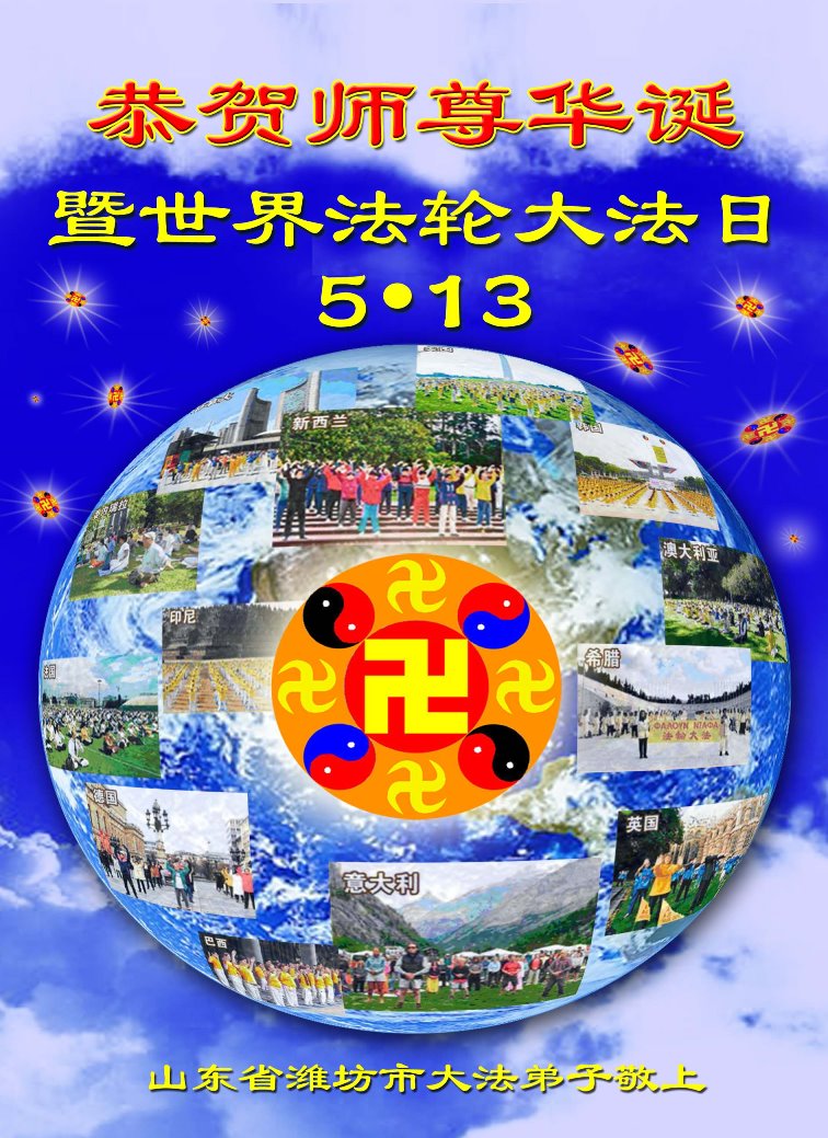 山東濰坊市大法弟子恭祝師尊華誕暨世界法輪大法日!