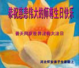 河北懷安大法弟子全家恭祝師尊生日快樂!