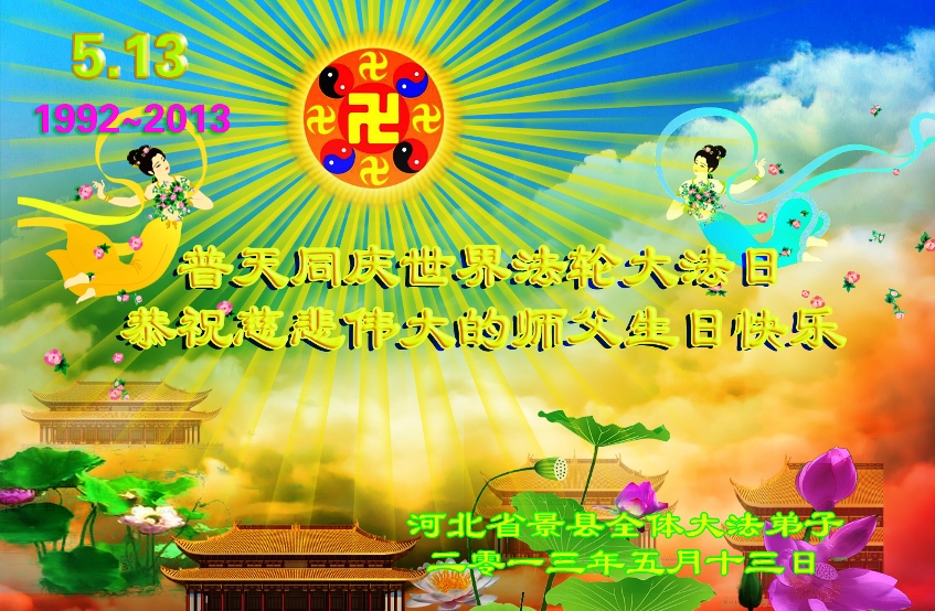 河北省衡水市景縣全體大法弟子恭祝慈悲偉大的師父生日快樂!慶賀第十四屆法輪大法日暨法輪大法洪傳二十一週年!