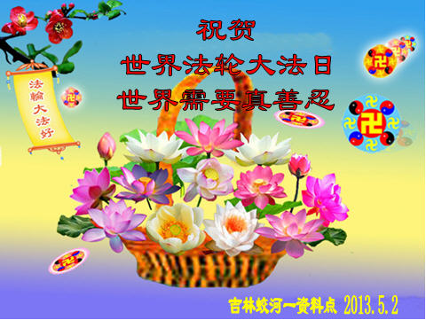吉林省吉林市蛟河市一資料點祝賀世界法輪大法日!