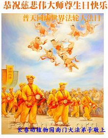 吉林省長春動植物園南門大法弟子恭祝師尊生日快樂!