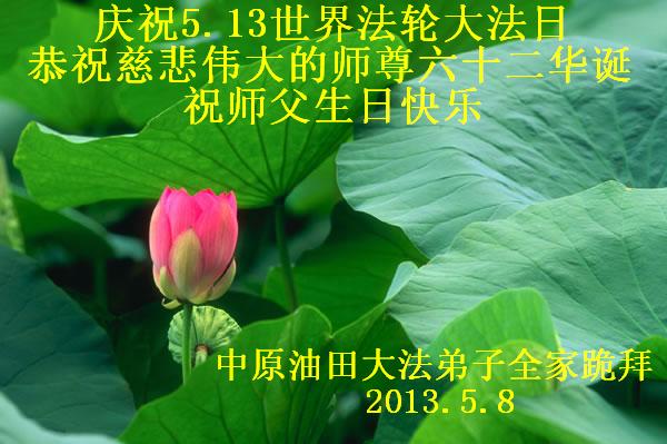 湖北省直轄行政單位潛江市大法弟子一家三口恭祝師尊生日快樂暨世界法輪大法日!