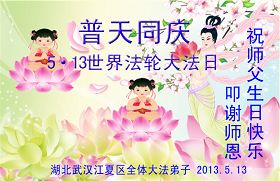 湖北武漢江夏區全體大法弟子敬祝師父生日快樂!普天同慶5.13世界法輪大法日!