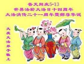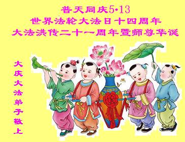 黑龍江省大慶大法弟子恭慶5.13世界法輪大法日十四週年!恭賀法輪大法洪傳二十一週年!恭祝慈悲偉大的師尊華誕快樂!