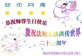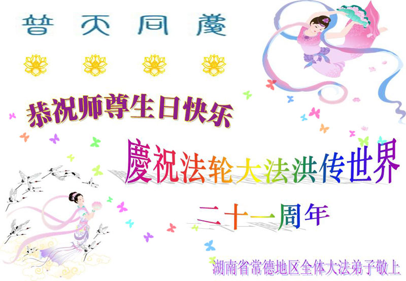 湖南省常德地區全體大法弟子恭祝師尊生日快樂!慶祝法輪大法洪傳世界二十一週年!
