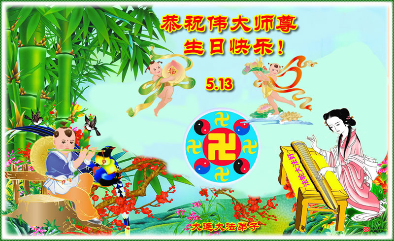 山東淄博大法弟子恭祝師父生日快樂,恭祝5.13日世界法輪大法日!