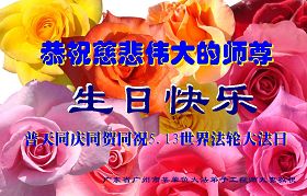 感謝師尊的慈悲苦度,我們一定做好三件事,講清真相,救度眾生,堅修大法到底,不辜負師尊的慈悲苦度,我們一定會修好自己,再一次祝師尊生日快樂!