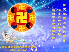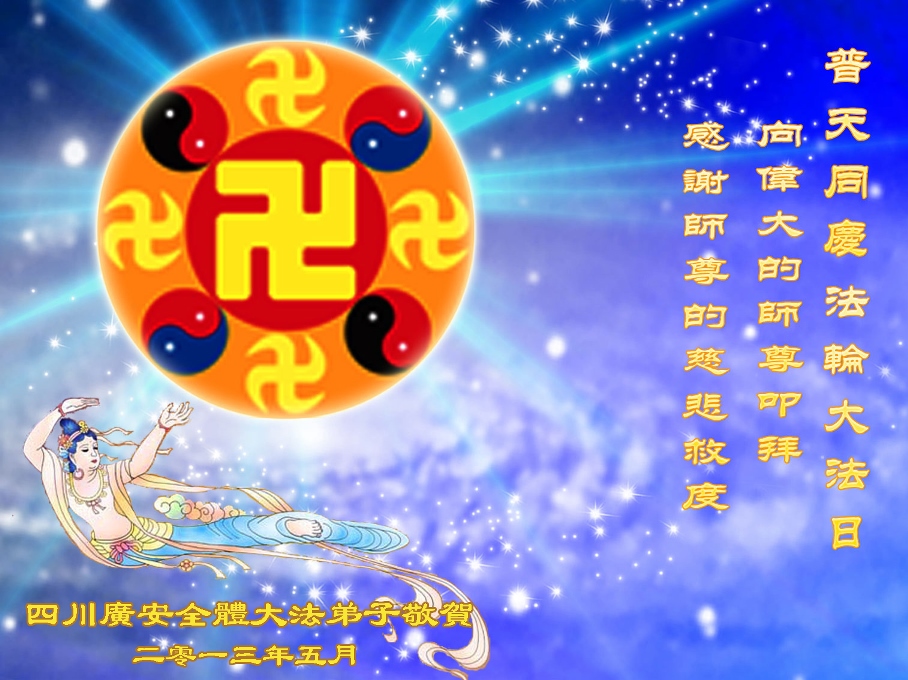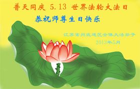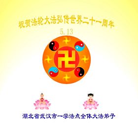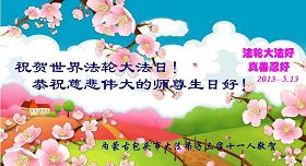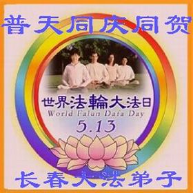 五月十三日,我們弟子永牢記,不忘師父洪傳大法日,我們共同慶祝世界法輪大法日。