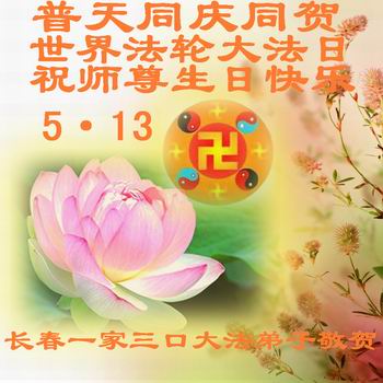長春一家三口大法弟子恭祝世界法輪大法日暨師父生日!
