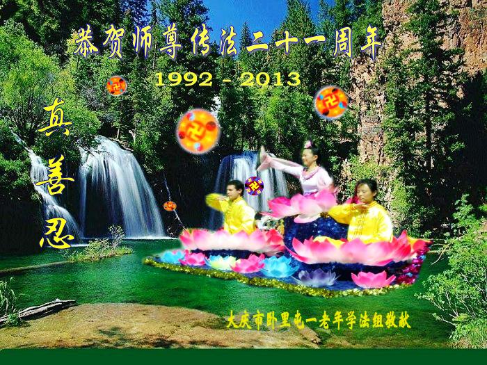 黑龍江省大慶臥裏屯一老年學法組恭賀師尊傳法二十一週年