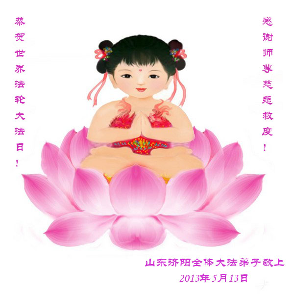 山東一大法弟子敬祝師尊生日快樂!慶賀法輪大法洪傳世界二十一週年!普天同慶513世界法輪大法日!