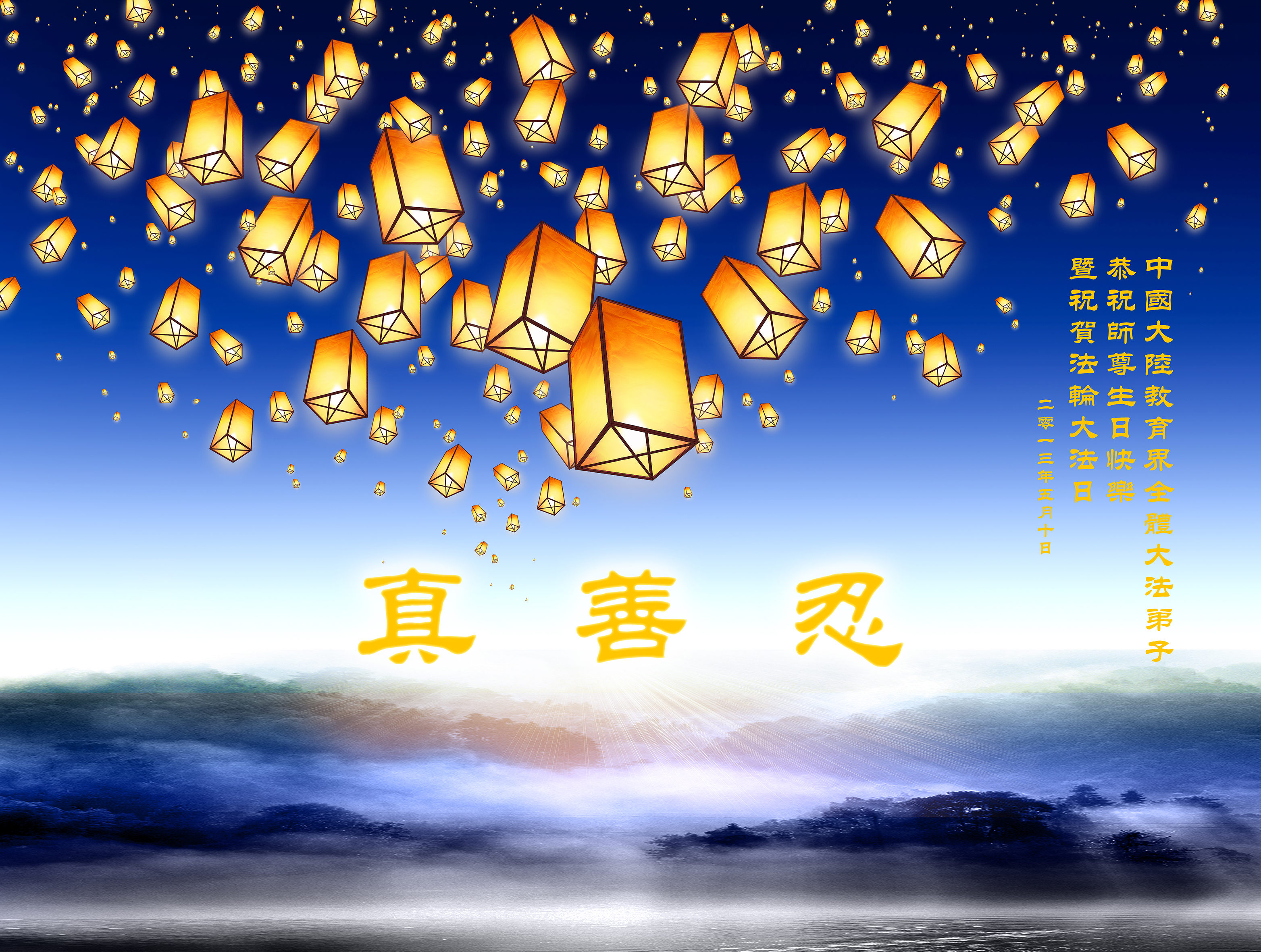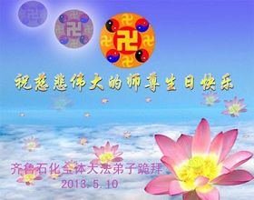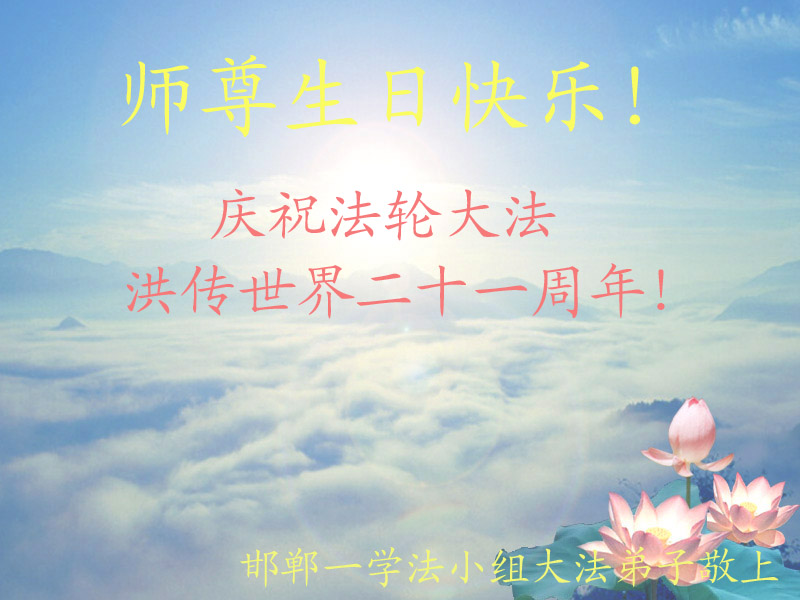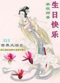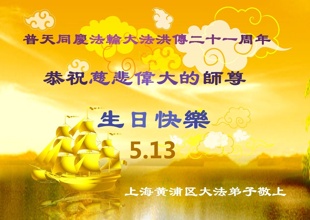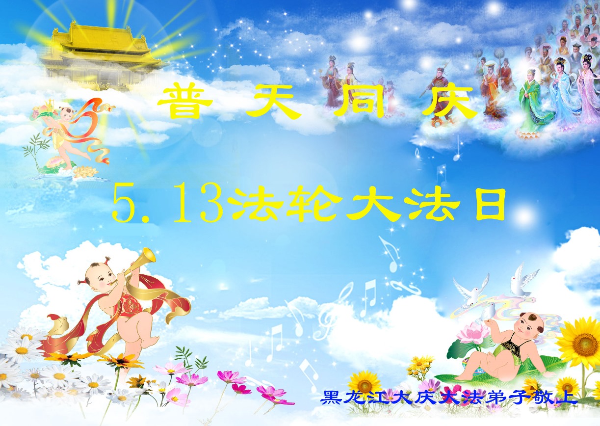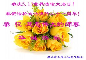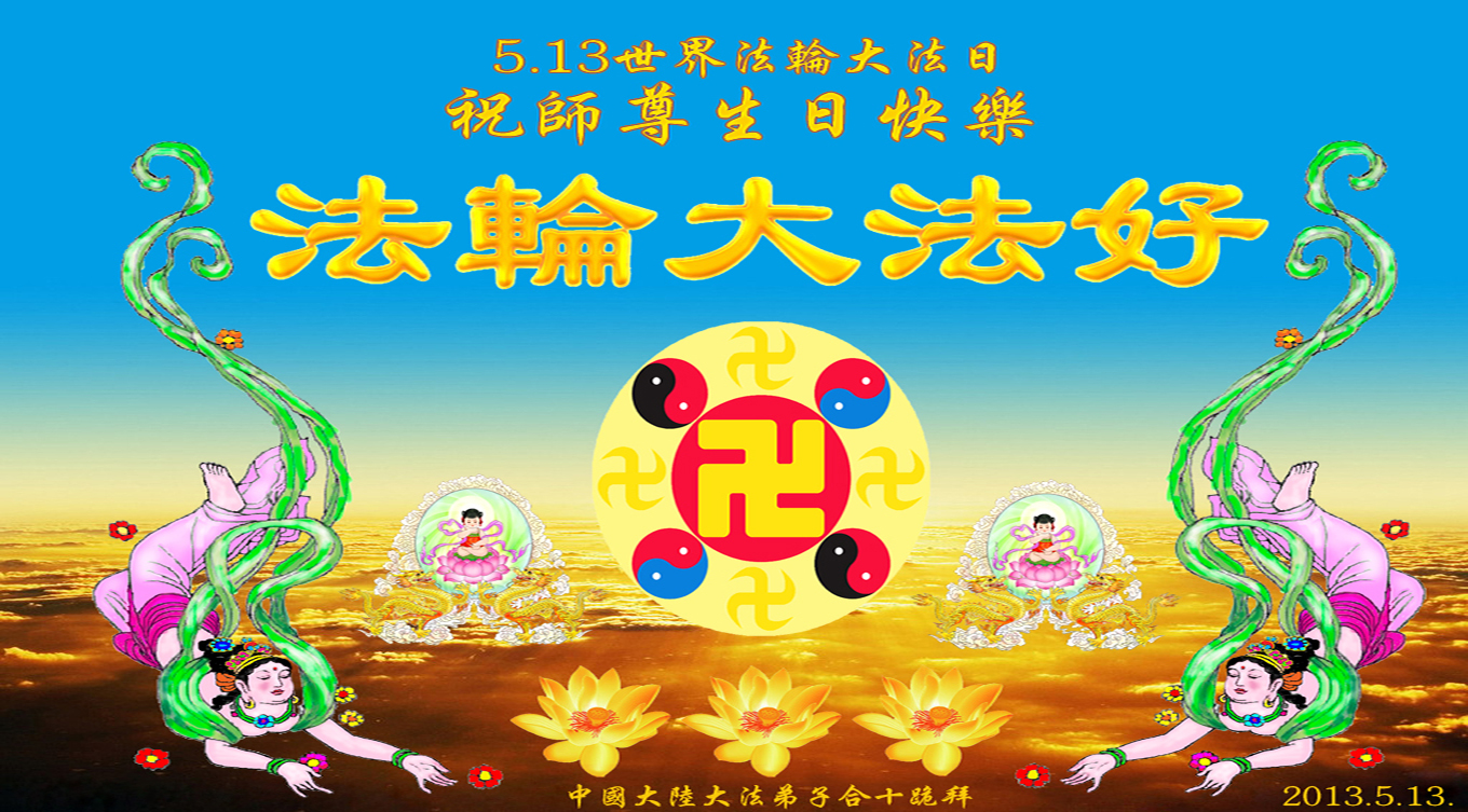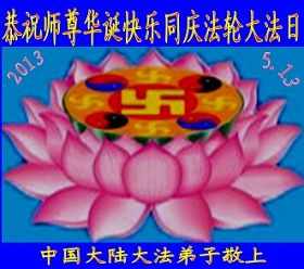 大陸大法弟子恭賀513世界法輪大法日!慶祝法輪大法傳世二十一週年暨師尊華誕日。