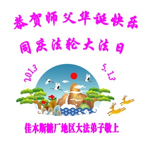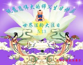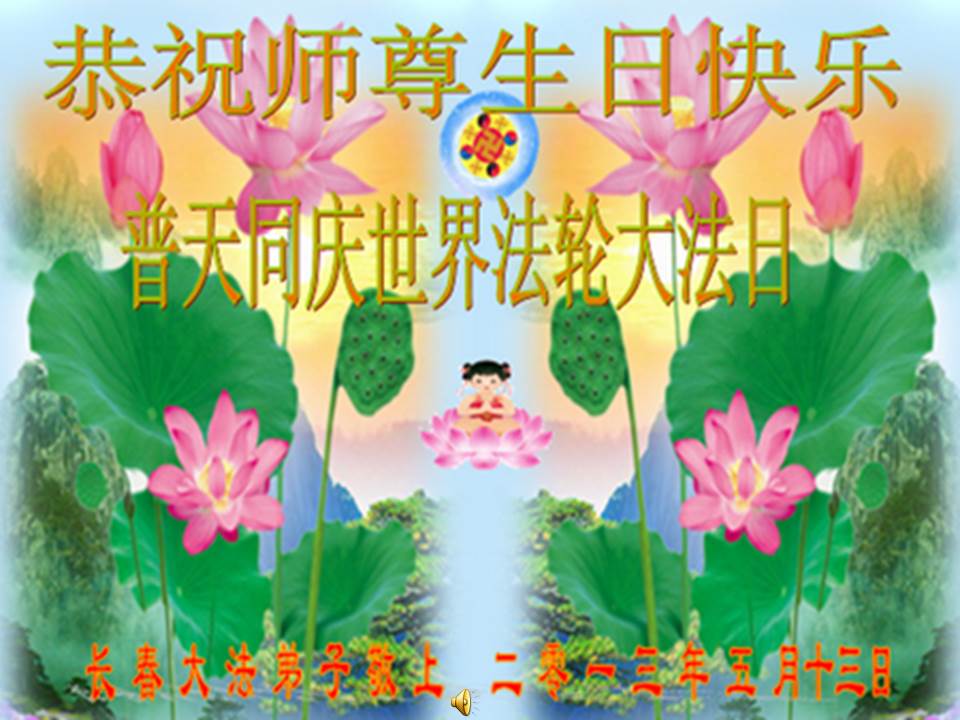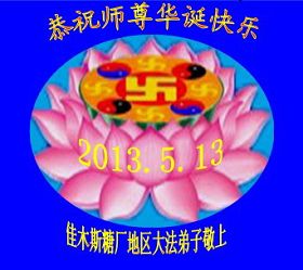 五月十三日世界法輪大法日快到了,這是全體大法弟子的節日也是眾生得救的難忘的日子,在此佳節之日祝偉大的師尊生日快樂!作為正法時期大法弟子一定要做好師尊要求的三件事,讓師尊多一些欣慰,少一些操勞。