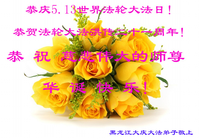 黑龍江大慶大法弟子在這普天同慶的節日到來之際,衷心祝願師尊華誕快樂!