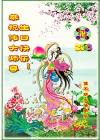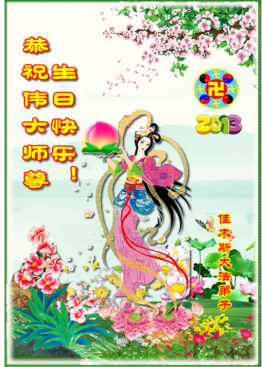 在迎來二零一三年的世界法輪大法日之際借明慧網向偉大慈悲的師尊恭祝生日快樂!以後我們會做的更好,在這最後的最後,一定要配合好,學好法,喚醒更多被邪惡矇蔽的世人。