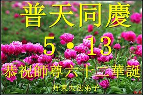 遼寧大法弟子代全體學法小組祝偉大的師尊生日快樂!並恭賀5•13世界法輪大法日!