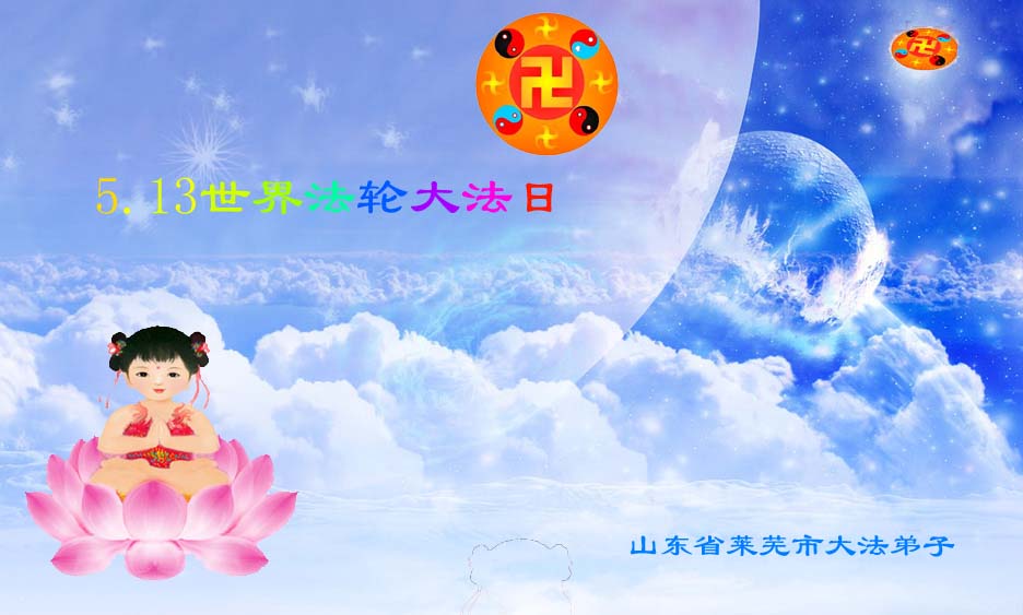 山東萊蕪大法弟子恭賀法輪大法洪傳世界二十一週年!普天同慶5.13世界法輪大法日!敬祝師尊華誕!