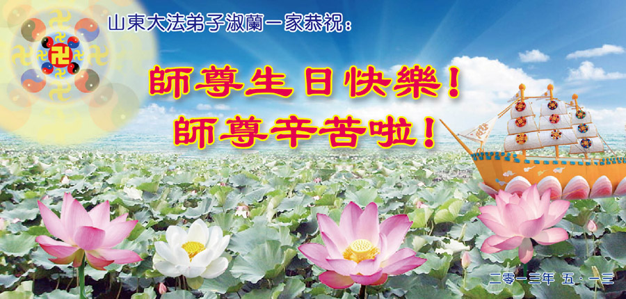 山東日照大法弟子恭祝師尊生日快樂!同賀世界法輪大法日!