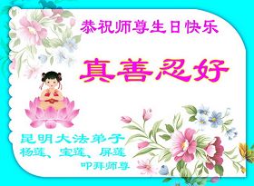 昆明市三位大法弟子恭祝師尊生日快樂!