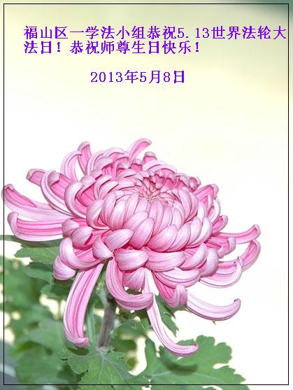 山東省煙台市福山區一學法小組大法弟子恭祝5.13世界法輪大法日!恭祝師尊生日快樂!