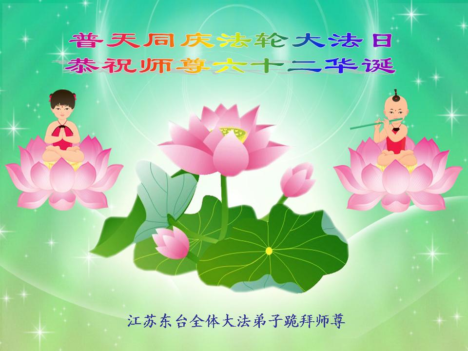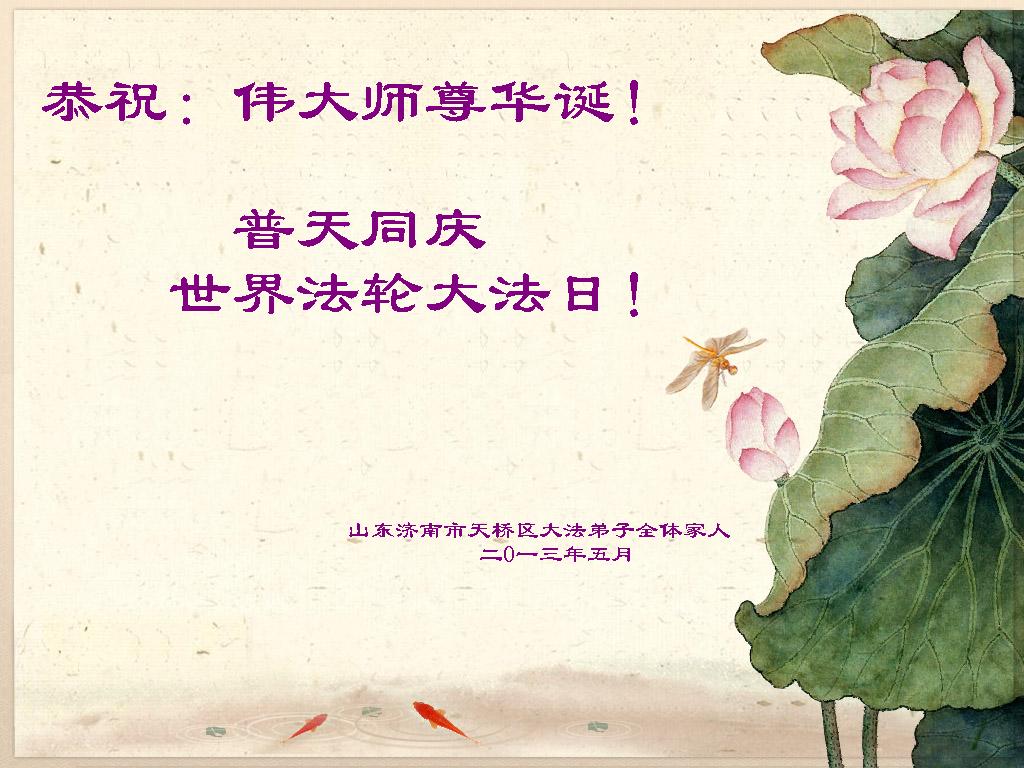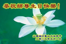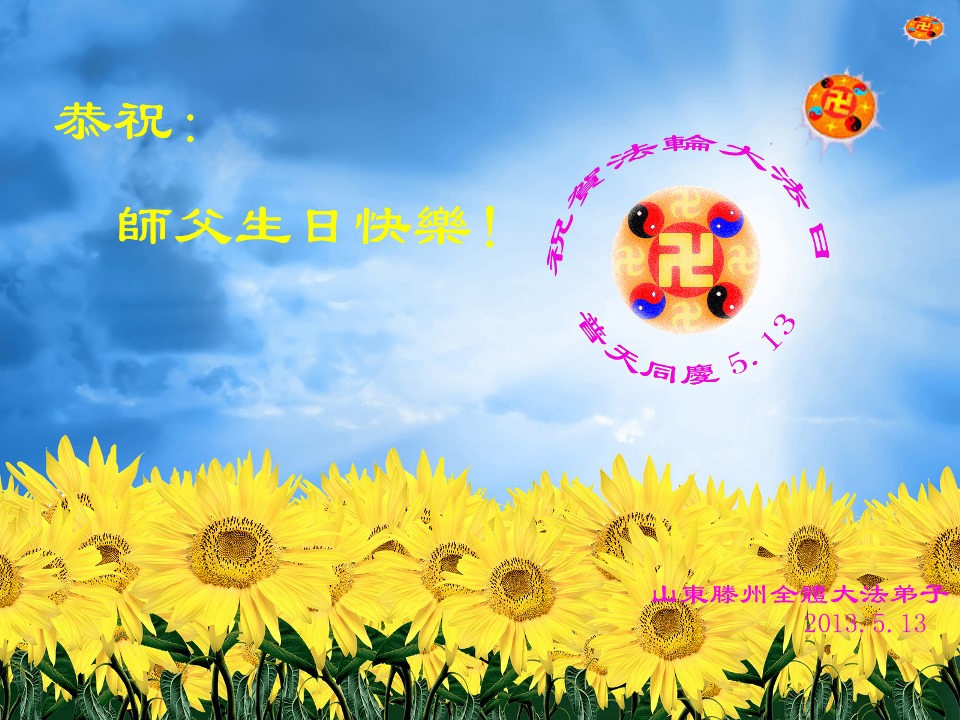 山東滕州全體大法弟子:祝賀慈悲偉大的師尊六十二華誕生日快樂!祝賀第十四屆世界法輪大法日的到來!感恩師尊的慈悲苦度。