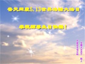 我是中國江蘇蘇州的一名大法弟子,在5月13日世界法輪大法日到來之際送出我的一份祝福。在這個最重要的日子裏用我最純淨的心感謝師父!感謝大法的救度!這個特殊而又珍貴的日子,將會被永遠紀念!!