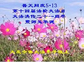大慶全體大法弟子恭慶513第十四屆世界法輪大法日!恭賀法輪大法洪傳二十一週年!