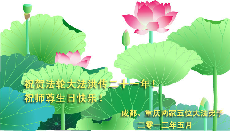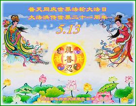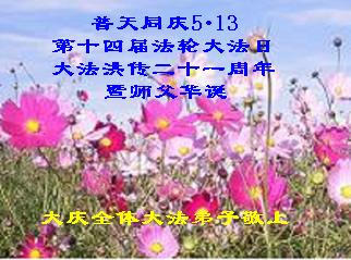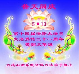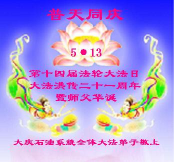 大慶石油系統全體大法弟子恭慶513第十四屆世界法輪大法。恭賀法輪大法洪傳二十一週年!恭祝慈悲偉大的師父華誕快樂!