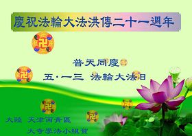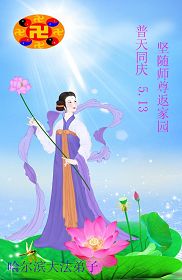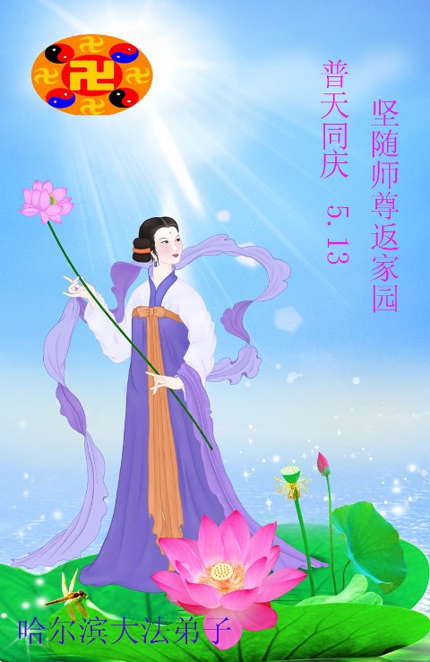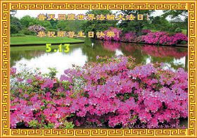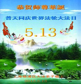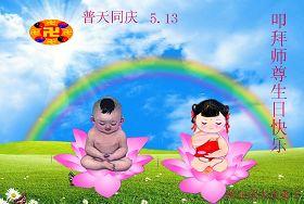 五月十三日, 是大法弟子難以忘懷的普天同慶的節日-----法輪大法日! 弟子在喜迎節日來臨的時刻怎能忘記遠居大洋彼岸的師父,師父為度弟子費盡心血,為我們承受了那麼多,弟子的感激之情無法言表。弟子決不負師恩浩蕩,力所能及的做好自己應該做好的三件事,助師正法直到最後一刻!
