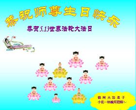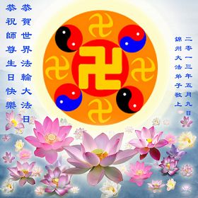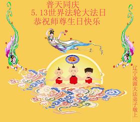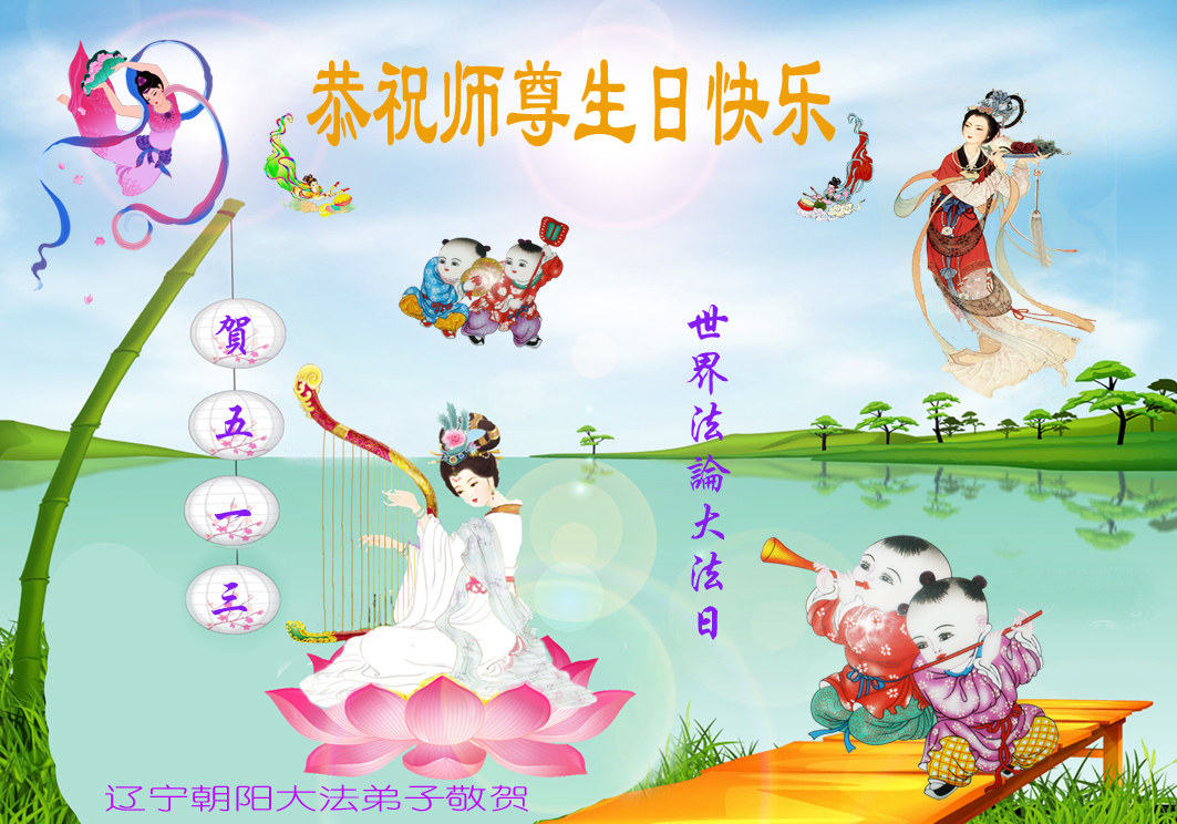 遼寧省朝陽市資料點大法弟子恭祝師尊生日快樂!傳法二十一週年!暨普天同慶、同頌五一三世界法輪大法日!