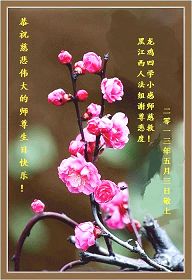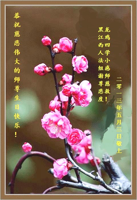 在這普天同慶,同祝、同頌的世界大法日到來之際,我們大陸黑龍江密山市大法弟子向偉大的師尊問好,祝師尊生日快樂!
