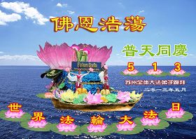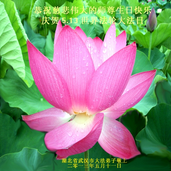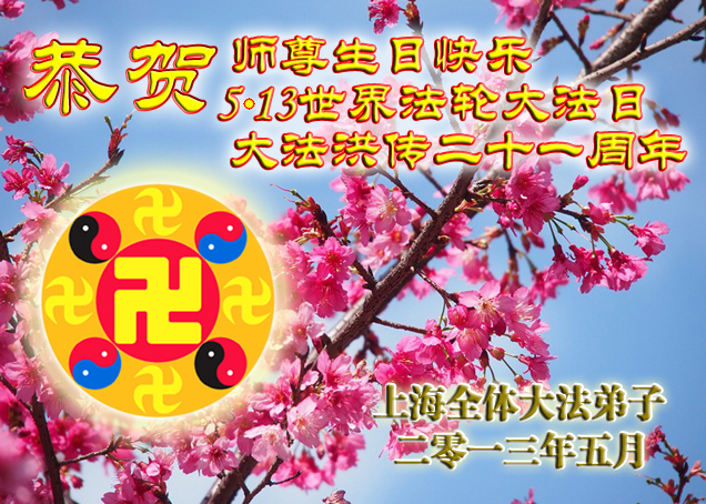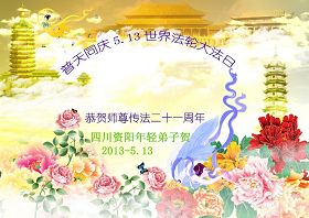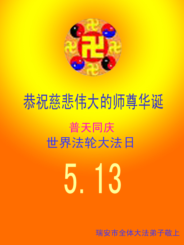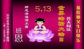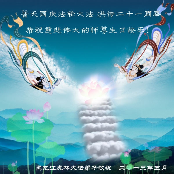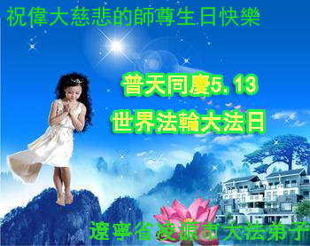 5•13既是師尊的華誕,又是師尊的大法洪傳世界二十一週年的紀念日,也是大法弟子難忘的感恩之日。感謝偉大師尊的慈悲苦度!師尊您辛苦了!師尊弟子想念您!祈盼著師尊早日回歸故國,祈盼著早日恭迎法正人間的輝煌時刻!