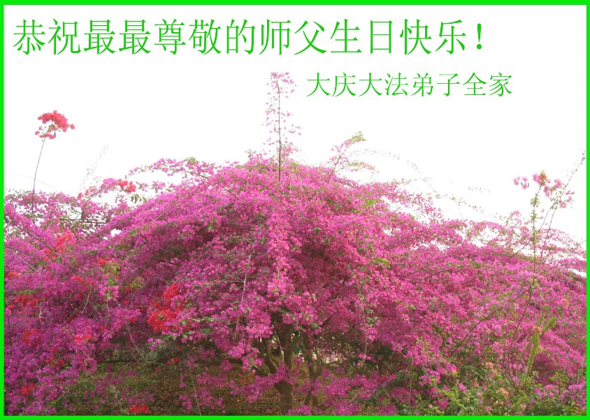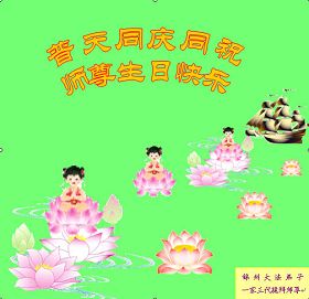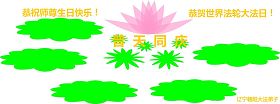 在這普天同慶的日子裏,弟子們感恩師尊的慈悲救度,弟子們一定整體配合好,共同精進,緊跟師尊正法進程,做好三件事,修好自己,多救眾生,兌現誓約,圓滿隨師還!全體弟子叩拜師尊:祝師尊生日快樂!感恩!