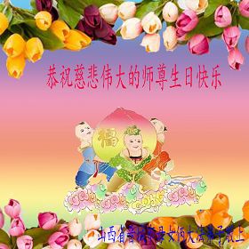 在這普天同慶的偉大時刻,弟子向慈悲偉大的師尊表達心中最誠摯的問候和感恩!祝師尊生日快樂!弟子一定不負師望,繼續做好三件事,多學法,多發正念,講清真相,在有限的時間裏多救人,完成史前洪願,圓滿隨師還。