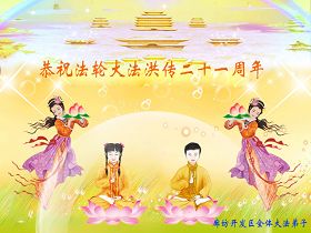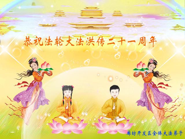 在世界法輪大法日和偉大師父生日到來之際,廊坊開發區全體大法弟子恭祝師父生日快樂!向師父叩拜!
