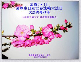 遼寧盤錦大法弟子恭祝師尊生日快樂!恭賀法輪大法洪傳二十一週年!