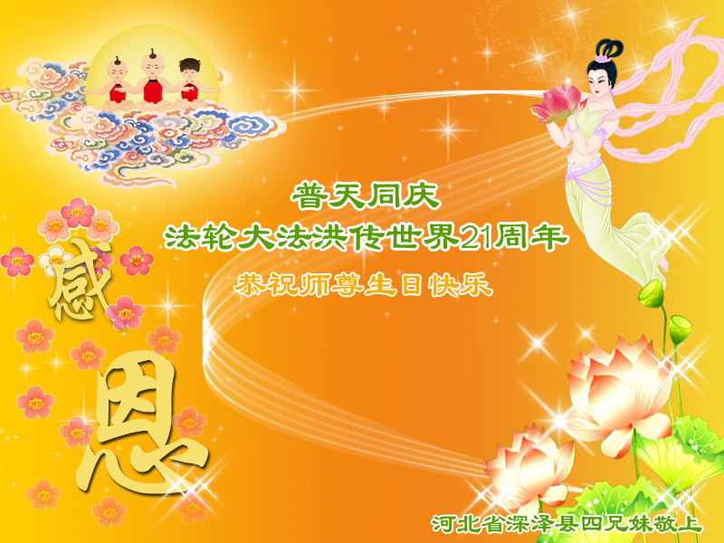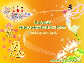 在普天同慶同賀法輪大法日,恭祝慈悲偉大的師尊華誕之際,我們會精進再精進,做實修的大法弟子。加倍努力的做好三件事,多救人。以此來報師恩,不辜負師尊對我們的慈悲苦度。
