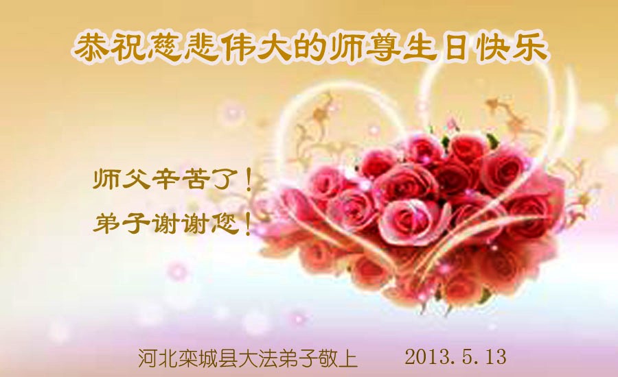 在此,我一個大陸大法弟子在這裏借明慧一角,用最虔誠最感恩的心祝願我們最慈悲偉大的師尊華誕快樂,讓我們道一聲:師父辛苦了,師父好!