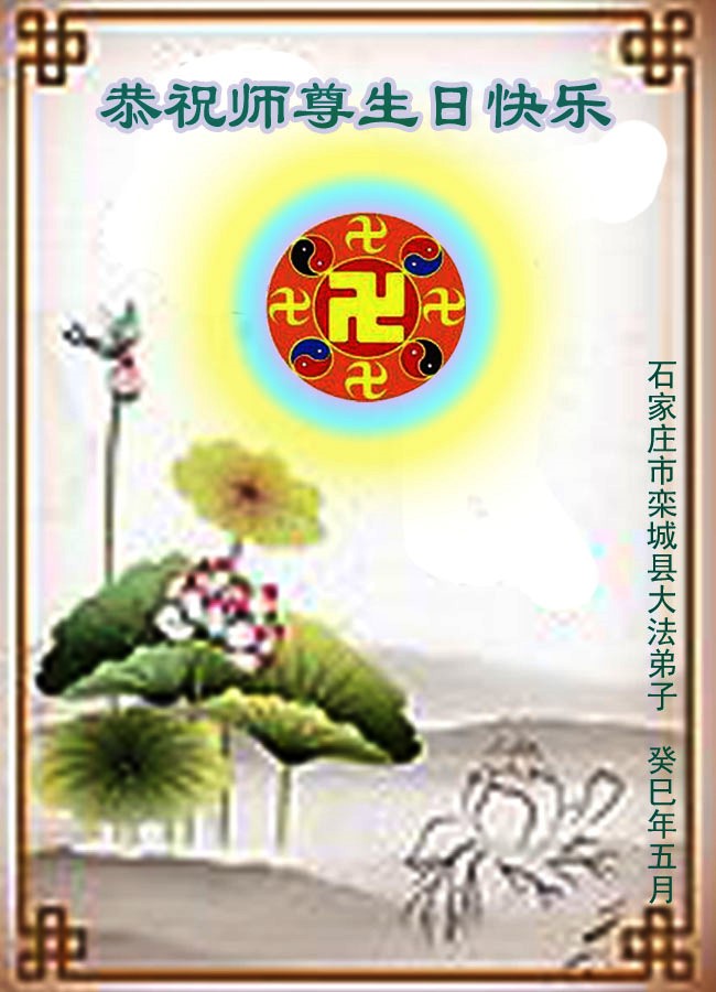 在「5.13法輪大法日!」這普天同慶的日子來臨之時,我們學法小組全體弟子向慈悲偉大的師尊致以最崇高的敬意,恭祝慈悲的師尊生日快樂!我們用盡人間的語言也無法表達對您的感恩,只有做好三件事,多救人才不辜負您的慈悲苦度,請師尊放心,我們一定多學法,學好法,珍惜修煉機緣,走正走好最後的路,完成自己的歷史使命。