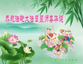 黑龍江省七台河山下學法小組大法弟子恭賀世界法輪大法日!