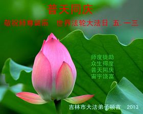 慈悲偉大的師尊您辛苦了。在慶賀法輪大法傳世二十一週年!慶祝5•13世界法輪大法日!恭賀慈悲偉大的師尊壽誕這普天同慶的日子裏,我們懷著無比崇敬的心感恩師尊,感恩大法。我們要用實際行動做好三件事,回報師尊的救度之恩。