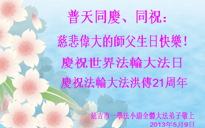 吉林省延邊全體大法弟子普天同慶5.13!恭祝師尊生日快樂!