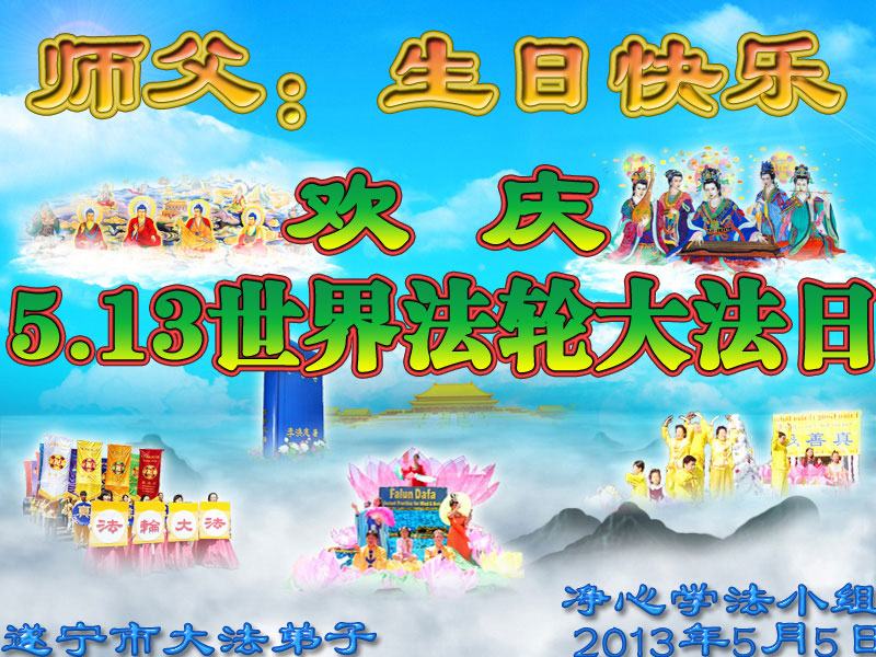 四川省遂寧淨心學法小組大法弟子恭祝師父生日快樂!歡慶5.13世界法輪大法日!