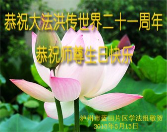 四川省瀘州藍田片區學法小組恭祝大法洪傳世界二十一週年!恭祝師尊生日快樂!
