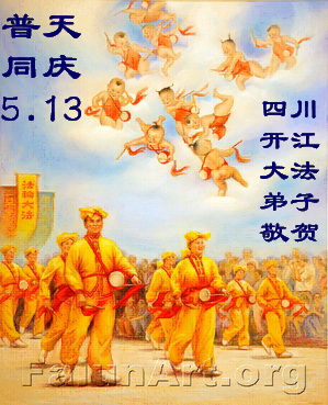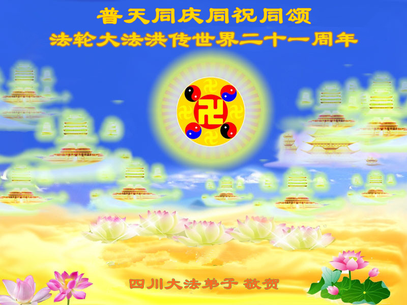 四川大法弟子恭祝師尊生日快樂!同慶同祝大法洪傳二十一週年!