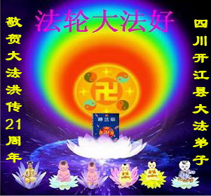 四川省達州市開江縣大法弟子敬賀大法洪傳21週年!恭賀5.13世界法輪大法日!敬祝師尊生日快樂!