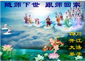 在此普天同慶的美好日子,請接受四川犍為縣一學法小組的全體大法弟子對師父的敬意與感恩:感謝師父的慈悲救度,祝師父生日快樂!我們一定不負師恩,做好三件事,隨師把家還。