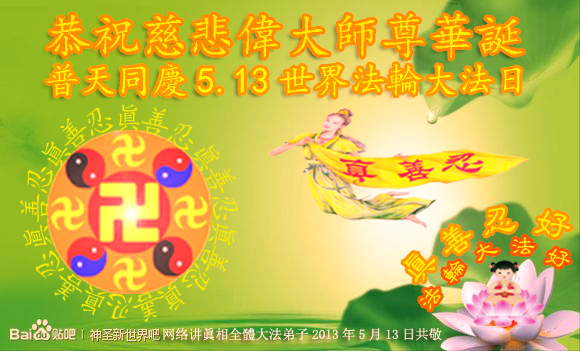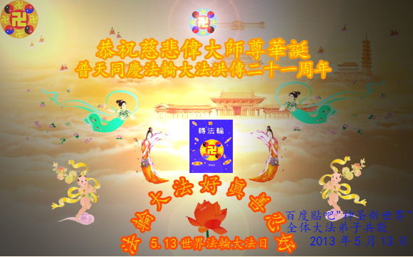 網絡講真相全體大法弟子恭祝慈悲偉大師尊華誕,普天同慶5.13世界法輪大法日!