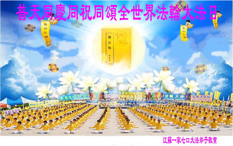 江蘇一家七口大法弟子普天同慶同祝同頌全世界法輪大法日!